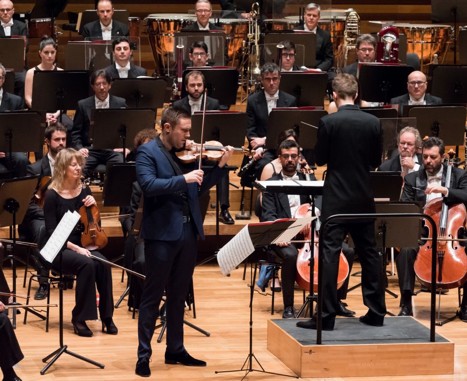 Valladolid. 15-II-2018. Auditorio de Valladolid, Sala sinfónica. Temporada de la Orquesta Sinfónica de Castilla y León. Obertura de Coriolano, op. 62 de Beethoven, Concierto para violín de Esa-PekkaSalonen y Suite de Parsifal de Wagner preparada por Andrew Gourlay. Director: Andrew Gourlay. Solista: Roberto González-Monjas, violín.