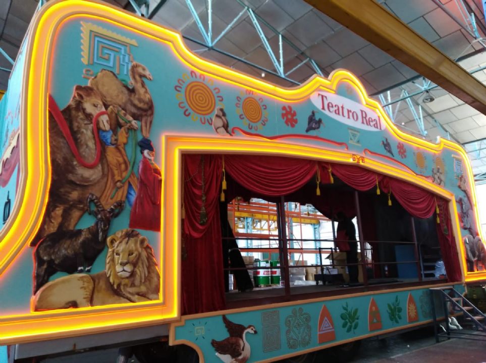 El Teatro Real es la única institución musical española que participa hoy en la Cabalgata de Reyes de Madrid, según informa el propio teatro a través de su departamento de comunicación. Es la segunda vez que la entidad madrileña participa en la cabalgata, en esta ocasión con una carroza que llevará la comitiva del Rey Baltasar. A lo largo de su travesía, la carroza permitirá oír fragmentos de óperas como Aida o Nabucco, de Verdi, o Semiramide, de Rossini, óperas cuyo argumento transcurre entre África y Oriente Medio. La carroza, que tiene una envergadura de 16 metros de largo por casi 6 de ancho, y pesa más de cinco toneladas, ha sido creada a partir de un camión trailer como los que se usan habitualmente para el transporte y almacenaje de la escenografía de una ópera.
