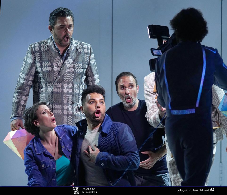 ¿Y cómo se ha vuelto a poner en escena en Madrid? Pues mal, muy mal. Se encargó la producción al español Paco Azorín, discreto director de escena que no sólo no tuvo a bien mantener los diálogos hablados del original, al considerar el libreto «inconsistente y ñoño», sino que transformó el argumento en una historia caótica, boba y pueril, un nudo gordiano tan enredado que ni el gran Alejandro lograría desatar salvo con espada. Podemos decir que Azorín mezcló, totalmente confundido El juego del calamar con los Oompa-Loompas [aquí llamados opalines] de Charlie y la fábrica de chocolate, la popular aplicación Tinder y el ritmo frenético y estética de un videojuego, tal es la enjundia referencial del autor, obteniendo un argumento imposible de comprender por mucho que se leyesen las notas o lo explicase un maestro de ceremonias inventado para la ocasión, a la sazón el actor Fernando Albizu que, como Eros XXI, fue lo mejor, con diferencia, de la función. El nerviosismo escénico constante, el sofocante maratón de sonidos e incómodas luces, ruidos y chistes facilones y un guión tan ingenuo que parecía ideado por la misma Irene Montero, convirtieron la representación en un verdadero suplicio para los espectadores, algunos de los cuales optaron por ir abandonando el teatro a medida que avanzaba la función. En resumen, una producción que lo tiene todo para ser galardonada en los prestigiosísimos Premios Ópera XXI, y que seguramente veremos en algún otro teatro español, para solaz beneficio de su autor y desgracia del público.