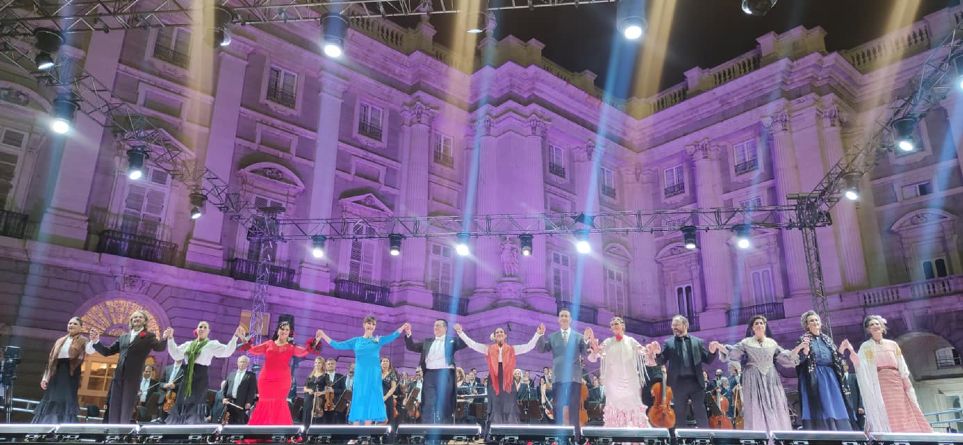 Madrid. 16-IX-2022. Palacio Real de Madrid. Cantar de amores. Escenas de zarzuela. Obras de F. A. Barbieri (1823-1894), Manuel Fernández Caballero (1835-1906), Pablo Sorozábal (1897-1988), Pablo Luna (1879-1942), Federico Chueca (1846-1908), Francisco Alonso (1887-1948), Ruperto Chapí (1851-1909), F. Moreno Torroba (1891-1982), Tomás Bretón (1850-1923), José Padilla (1889-1960), Tomás Bretón (1850-1923). María José Montiel (mezzosoprano), Damián del Castillo (barítono). Compañía de flamenco de Concha Casatejada: Concha Casatejada (bailaora), Maximiliano Rebman (bailaor), Cristina Villaplana (bailarina), María Sanz (bailarina). Solistas del Coro de RTVE: Raquel Albarrán (soprano), Sonia González (soprano), Carmen Ávila (soprano), Esmeralda Espinosa (mezzosoprano), Carolina Martínez (contralto), Vicente Martínez (barítono), Carmelo Cordón (barítono). Coro y Orquesta Sinfónica de RTVE. Marco Antonio García de Paz (director del Coro RTVE). Thomas Herzog, director.