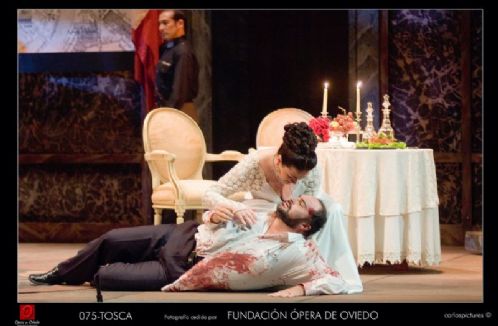 Una institución seria no hubiera dudado en sustituir al intérprete de inmediato, y demostrar así, de verdad, su respeto hacia los asistentes. Dar a entender que se está haciendo un favor siguiendo con la representación es, como mínimo, hipócrita,  e insulta la inteligencia del público. Hasmik Papian es una intérprete de notable trayectoria pero, en la actualidad, no parece que sus condiciones líricas sean las más adecuadas para interpretar Tosca en un teatro como el Campoamor. Dejó ver muchas limitaciones, fatigadas e incómodas de oír, que tenían más que ver con sus recursos para salir del paso que para interpretar con libertad su papel. Resultó evidente que solucionaba con golpes de diafragma lo que no podía arreglar de otra manera. Como consecuencia, su línea melódica parecía en ocasiones estar más gritada que cantada. Su interpretación del conocido Vissi d´arte resultó profunda y emotiva, pero no arregló la discreta sensación general. Juan Pons volvió al Campoamor para encarnar a Scarpia, un personaje que domina del todo. Estuvo impresionante en escena, donde su presencia y carisma fue uno de los alicientes de la noche. Vocalmente estuvo bien, sin llegar a conquistar por el oído. De los tres protagonistas fue el más aplaudido.  Miguel Ángel Zapater encarnó a un Angelotti correcto, Luis Cansino a un Sacristán fresco y, quizás, algo exagerado. María Fidalgo estuvo exquisita como Un joven pastor, Mikeldi Atxalandabaso, José Manuel Díaz y Joan Sebastiá Colomer, acertados como Spoletta, Sciarrone y el Carcelero. El Coro de la Ópera de Oviedo obtuvo un gran resultado. La producción respetó los lugares y atmósferas. Escenográficamente el tercer acto podría estar más conseguido, pero en general el diseño de luces y la escenografía ni desentonó, ni encandiló, sino que más bien acompañó con un cierto gusto. El cambio de época ya fue otra cosa, una especie de capricho innecesario que dejó varias inconsistencias. Por ejemplo, fue curiosa y sin sentido la mención de Bonaparte en plena Italia fascista. Sólo una cosa fue totalmente absurda, la última escena, en la que Tosca empujó forzada e ingenuamente a un soldado. El final tampoco se quedó manco, ya que mientras la protagonista se lanzaba al vacío, los soldados parecían morir entre relámpagos de justicia divina.