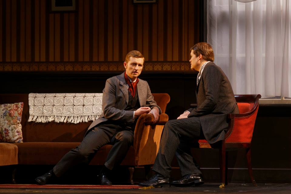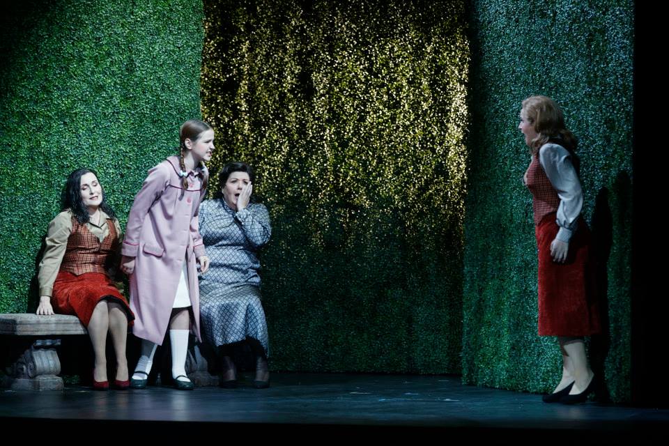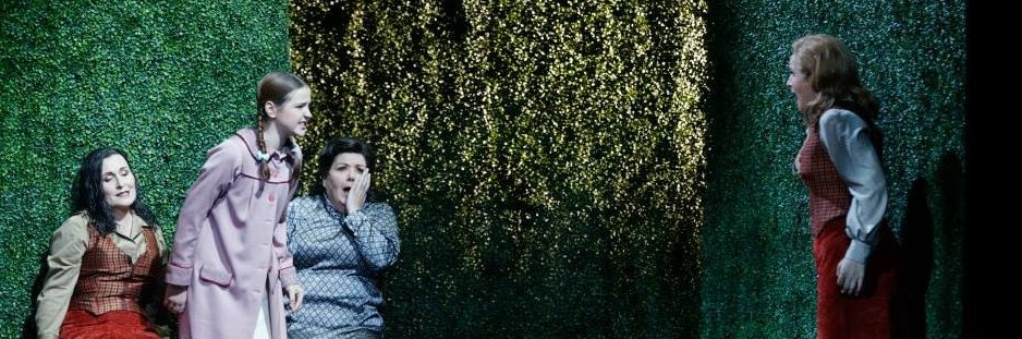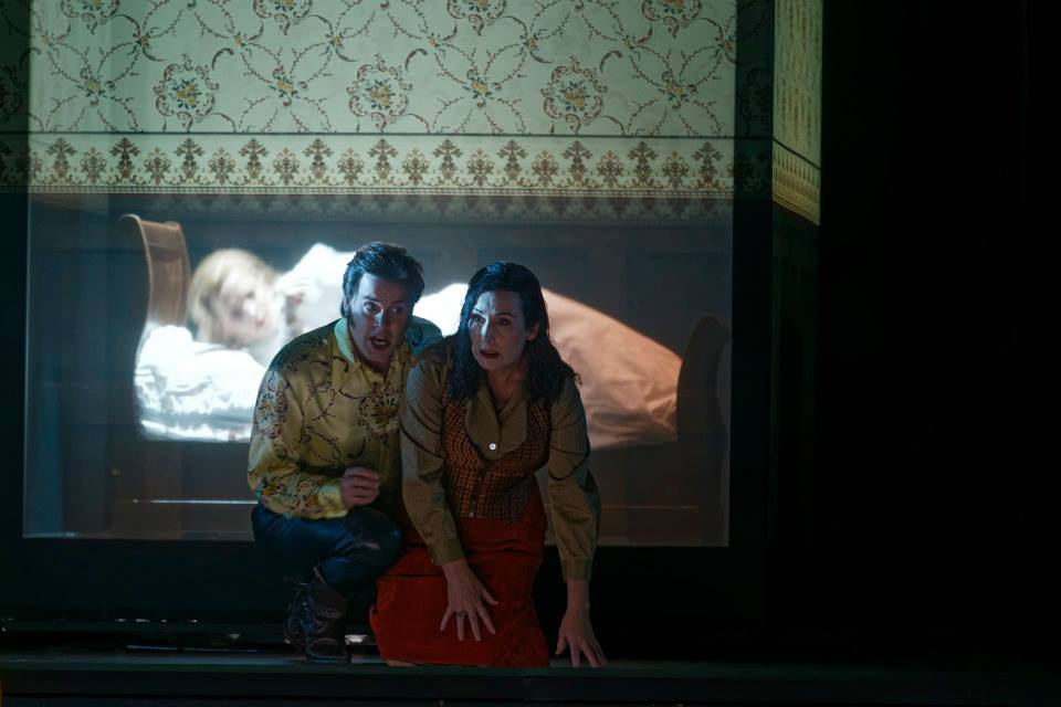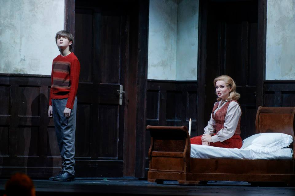 La producción para este doble programa, firmada por Walter Sutcliffe, nos supo a poco, porque apenas acierta a ir más allá de una escenografía literal, con frecuencia meramente decorativa. Poco más que una sucesión de cuadros interiores, ambientados en la Iglaterra victoriana, lastrado todo ello además por una iluminación poco inspirada, de Wolfgang Goebbel, oscura en demasía. Una dirección de actores planteada con oficio acierta apenas a levantar el tono de una representación que por momentos se hizo larga y un tanto tediosa, precisamente porque la puesta en escena no acertó a reflejar con intensidad la evolución de la acción que marca el libreto. La puesta en escena para Owen Wingrave se había visto ya en Frankfurt en 2010 y en esta ocasión se estrenaba por tanto tan sólo el trabajo sobre La vuelta de tuerca, aprovechando la misma escenografía.