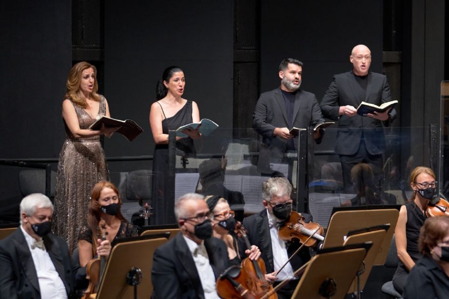 Sevilla, Teatro de la Maestranza. 8-7-2021. 9.ª sinfonía, en re menor, Op. 125, «Coral», de Ludwig van Beethoven. Raquel Lojendio, soprano; Cristina Faus, contralto; Juan Antonio Sanabria, tenor; José Antonio López, bajo; Coro de la Asociación de Amigos del Teatro de la Maestranza; Juan Luis Pérez, director del coro; Real Orquesta Sinfónica de Sevilla; Juanjo Mena, director de orquesta.