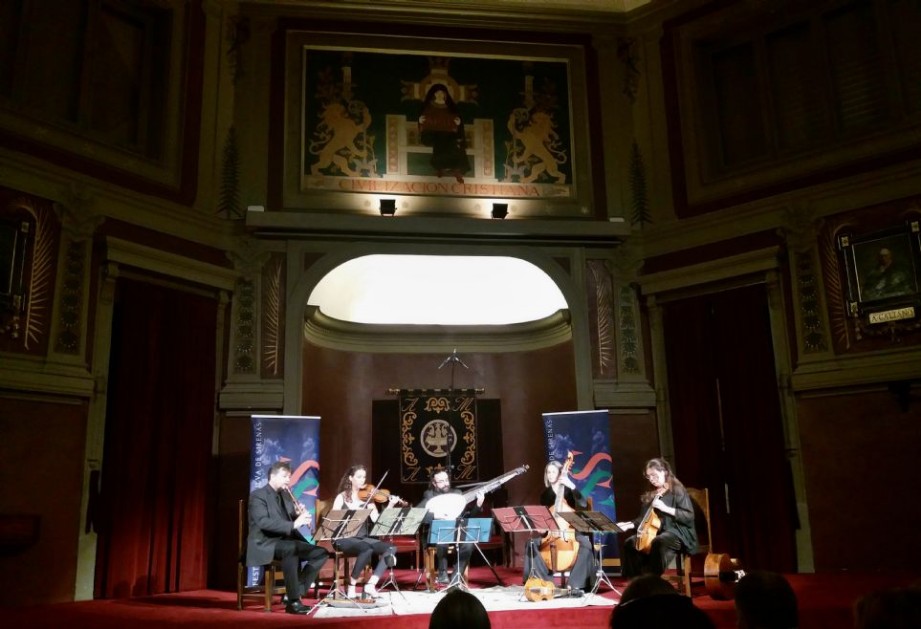 Madrid, 9-X-2021, Salón de actos del Ateneo de Madrid. II Festival Encuentro Silva de Sirenas [FESS Madrid]. The Broken Consort. Obras de Matthew Locke. Delirivm Musica: Juan Portilla [flautas de pico y dirección artística], Beatriz Amezúa [violín barroco], María Alejandra Saturno y Calia Álvarez [violas da gamba], Ramiro Morales [archilaúd].