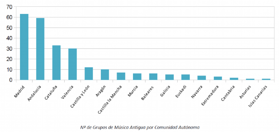 Además, la obtención y clasificación por regiones de toda esta información ha permitido obtener la «radiografía» de un sector que a priori creíamos más pequeño, pero que con el paso de los meses se nos mostró mucho más amplio y diverso de lo que en un principio podíamos suponer, pues 245 grupos de música antigua son los que actualmente se pueden encontrar en España. Por otro lado, indirectamente acabamos buscando también información sobre los principales y más conocidos grupos de música antigua del resto del mundo, lo que también ha arrojado algo de luz sobre la situación de la música antigua española y su morfología.