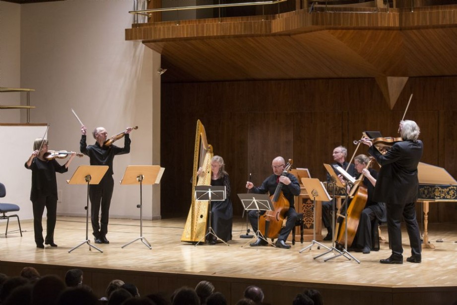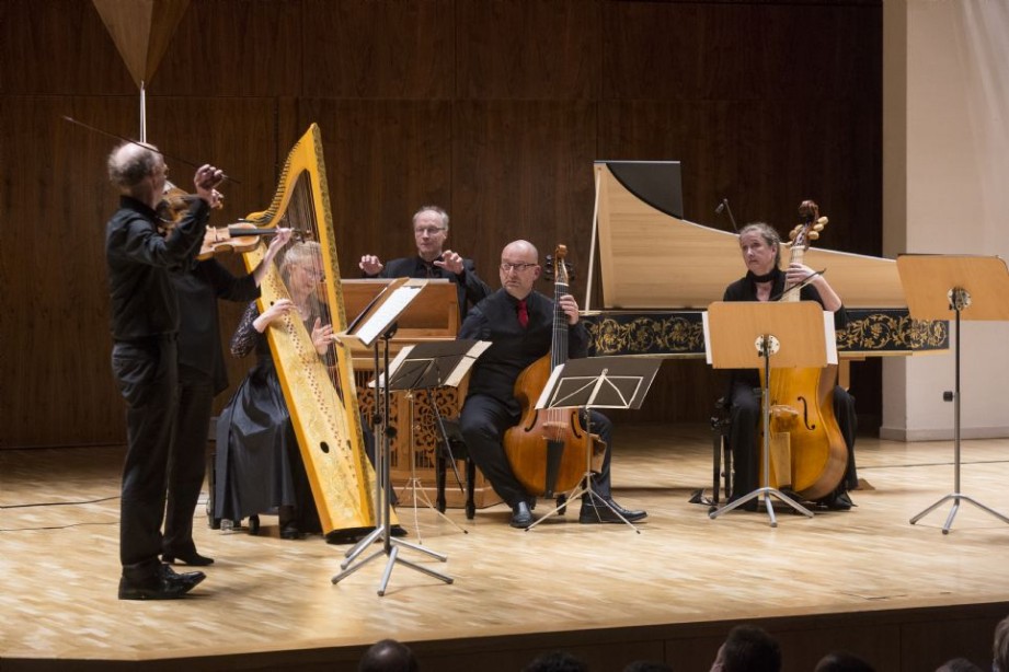 Una amalgama de compositores, en su mayor parte italianos, aunque no solo, fueron desfilando por el escenario, mientras los instrumentistas de la Akamus iban adaptando su plantilla a las diversas exigencias planteadas por cada uno de ellos. El título del programa, que en cierta manera reza correctamente, ha de ser tomado con matices, dado que algunos de los autores aquí representados no pueden ser considerados ya como «padres» de la emancipación de la música instrumental, sino más bien representantes del llamado Stylus phantasticus, corriente de pleno derecho en la máxima expresión de los diversos géneros instrumentales del siglo XVII, pero que no puede considerarse como nacimiento de nada, en realidad, sino un establecimiento pleno de algo ya existente. Comenzó la velada con el tutti sobre el escenario para ofrecer la Sonata a 6 para dos violines, tres violas da braccio y violone en re menor [Partiturbuch Ludwig, 1662], de Antonio Bertali (1605-1669), sirvió para observar los mimbres sobre los que los instrumentistas iban a crear el recital: afinación muy controlada, un empaste bien trabajado entre secciones y en el tutti, un gran entendimiento entre ellos –se notan los años de trabajo conjunto–, un diálogo muy compacto entre los violines barrocos de Georg Kallweit y Kerstin Erben –no viola, como se indicaba en el programa–, aunque los pasajes para tres violas da braccio [Clemens-Maria Nuszbaumer y Stephan Sieben a las violas barrocas, con Jan Halfter en la viola da gamba –no en el violonchelo barroco, como indicaba el programa de mano–] no lograron refulgir especialmente. En general, como a lo largo de la noche, tuvieron más valor los pasajes con todos los efectivos que las secciones solísticas. El continuo, con Annette Rheinfurth al violone, Raphael Alpermann al órgano positivo –solos en ocasiones contadas se puso frente al clave– y Siobhán Armstrong en el arpa doppia logró aportar interesante color, aunque el equilibrio entre ellos podría haberse refinado en varios momentos –más presencia del arpa, por ejemplo–. En general, el trabajo del continuo sobre el ensanchamiento y aligeramiento de las texturas resultó muy inteligente.
