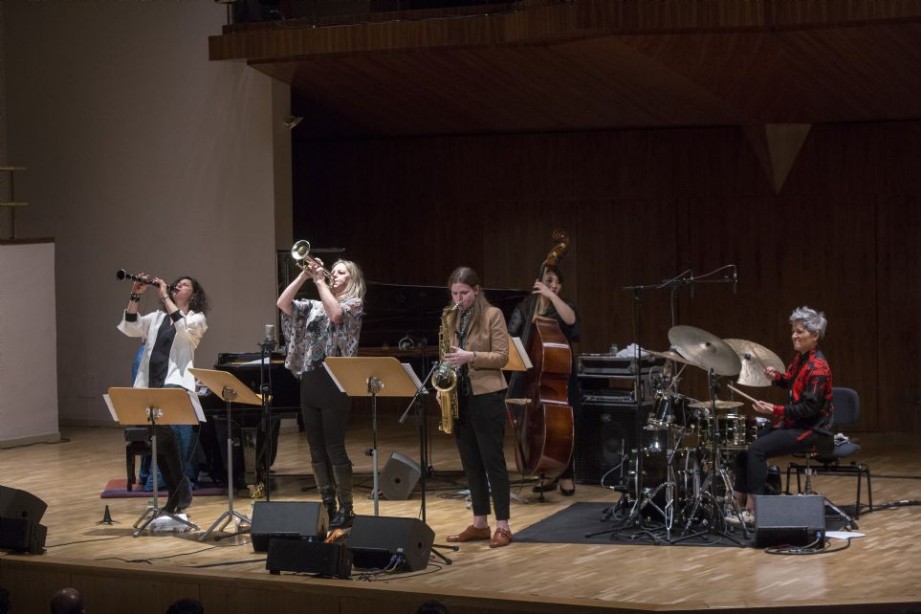 Madrid, 18-II-22, Auditorio Nacional de Música. Centro Nacional de Difusión Musical [Jazz en el Auditorio]. Artemis: Anat Cohen [clarinete], Nicole Glover [saxo tenor], Ingrid Jensen [trompeta], Noriko Ueda [contrabajo], Allison Miller [batería], Renee Rosnes [piano y dirección].