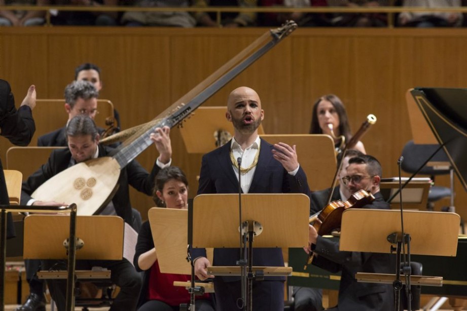 La única voz masculina fue la del estadounidense Zachary Wilder, uno de los tenores de cabecera de varios conjuntos historicistas a nivel mundial, que presentó un timbre noble, con tintes cobrizos en un registro de cabeza de bastante finura, luminoso –aunque algo justo– en el agudo y cálido en el registro medio, pero falto de sonido en el grave. Se movió bien en las arias de carácter regio –mayoritarias en este rol–, a pesar de que en «Tutte finor dal cielo», por ejemplo, algunos saltos interválicos amplios hacia el agudo no fueron controlados ni afinados en su totalidad, así como las agilidades en la coloratura, algo desiguales en la primera ocasión, aunque mejoradas notablemente en su repetición –lo que habla bien de su inteligencia musical–. Cuando está en su sitio, la zona aguda puede resonar con prístino brillo, como en «Puoi vantar le tue ritorte», un aria en cuyas agilidades se movió con mayor criterio y que concluyó con una cadencia ejemplar en cuanto a su prestancia y belleza de emisión. Su última aria [«Se un tenero disprezza»], de imponente carácter marcial y una electrizante energía, fue un lúcido ejemplo de la mixtura entre un canto de tintes regios y otro de una mayor delicadeza. En su trío con Quintans y Espada [«Guardami, padre amato»] plantearon un número concertante de interesante concepción, con inteligibilidad e imbricación de sus líneas solistas y un logrado equilibrio con la orquesta.