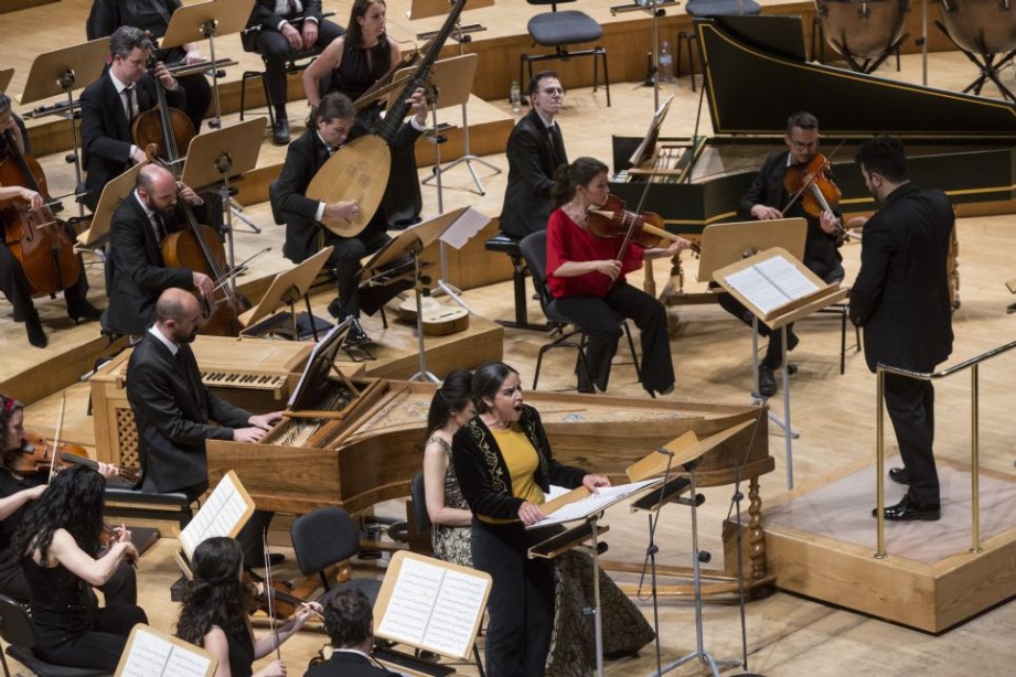 A esto hay que añadir la presencia muy interesante de numerosos vientos, que cumplieron con nota sus expectativas, comenzando por los oboes barrocos de Bettina Simon y Clara Espinosa –magnífica la primera en sus solos–, siguiendo por las trompas de César Navarro y José Antonio Padilla –mucho trabajo el suyo a lo largo de la velada y muy bien resuelto– y concluyendo con las trompetas Miguel Olivares –trompeta natural, sin agujeros– y Ferrán García, que brindaron una actuación muy pulcra y de enorme solvencia para unas partes siempre exigentes. De poca duración, aunque no por ello irrelevante, la presencia de Antonio Campillo y Laura Quesada en los traversos barrocos, dos de los mayores exponentes del instrumento en nuestro país que aportaron grandes dosis de refinamiento y un evocador ambiente en sus interpretaciones. Mención especial merece, la fantástica sección de bajo continuo, desde una sección de violonchelos barrocos dúctil y bien trabajada [Guillermo Turina, Juan Pérez de Albéniz y María Saturno, los dos últimos fueron alternándose en sus labores junto a Turina, encargado con excelencia del continuo en los recitativos–, pasando por la profundidad sonora y la apabullante suficiencia de Ismael Campanero –pocos hay en Europa capaces de sostener un continuo a solo en su instrumento con su presencia y calidad de sonido–, hasta llegar a la tecla, con un Daniel Oyarzabal siempre resolutivo al extremo en clave y órgano positivo, que además hizo virguerías en los recitativos para que los cortes llevados a cabo no tuvieran un efecto musical muy evidente, sino una continuidad discursiva deseable–, ayudado por David Palanca en el tutti, ambos muy sólidos, imaginativos y sobrios a partes iguales cuando así se requería. No es posible olvidar la labor de Marta Calvo al fagot barroco, un instrumento fundamental en cuanto al color orquestal se refiere y con ciertas dosis de exigencia en varios momentos, defendidos siempre con gran inteligencia y manejo técnico. Manuel Minguillón es uno de los pilares de este conjunto, al que lleva unido desde sus inicios; aquí soportó buena parte del peso del continuo tanto, en la guitarra barroca –un modelo algo avanzado– y la tiorba, cambiando de uno a otro para colorear con sutileza tanto los recitativos como las arias y números de conjunto. Es el suyo un sonido de notable proyección, bastante oportuno en los desarrollos, dejando destellos siempre a considerar. Por último, Daniel Garay elaboró las percusiones con profusión de elementos –rodillo, cascabeles, placas de metal…–, además de los timbales, para pintar tempestades, tormentos y otros elementos del drama de forma certera y con una presencia muy ajustada.