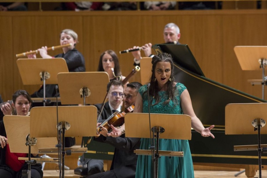 Precisamente, la soprano extremeña fue quien obtuvo más aplausos a lo largo de la velada, merced a las numerosas arias que defendió con su buen hacer habitual y su experiencia como una de las referencias en el canto histórico del panorama español en las últimas dos décadas. En «Sono in mar; non veggo sponde», con buen trabajo dinámico a cargo de la orquesta, hizo gala de sus características vocales propias, que la convierten en una cantante bastante personal y reconocible, con una coloratura que, si bien no impactó, logró resolver con suficiencia. No todo resulta ejemplar en su canto, no obstante, pues al agudo llega en ocasiones más por pundonor y golpes aire que con la facilidad esperable, y tiene una tendencia hacia el lucimiento excesivo en las cadencias de las arias, en unos pasajes que en muchas ocasiones luchan contra la propia naturaleza del aria. Magníficamente plasmada la gracilidad melódica tan propia de los napolitanos en el aria «Se d’amor, se di contento», mientras que en «Mi sento il cor trafiggere», un aria de bravura de enorme exigencia, cumplió con nota las exigencias canora, especialmente en la zona media, pues de nuevo faltó cierto refinamiento en el registro agudo. Mención especial aquí merece la elaboración de la exigente escritura rítmica a cargo de la cuerda y, sobre todo, del bajo continuo. De nuevo, la excesiva presión del fiato en su aria final y una coloratura muy exigente que no solventó con excesiva brillantez deslucieron su aria final «Decisa è la mia sorte», aunque no así un papel general muy bien defendido a lo largo de la noche. Fantástico trabajo en la elaboración de las progresiones armónicas en la cuerda aquí.