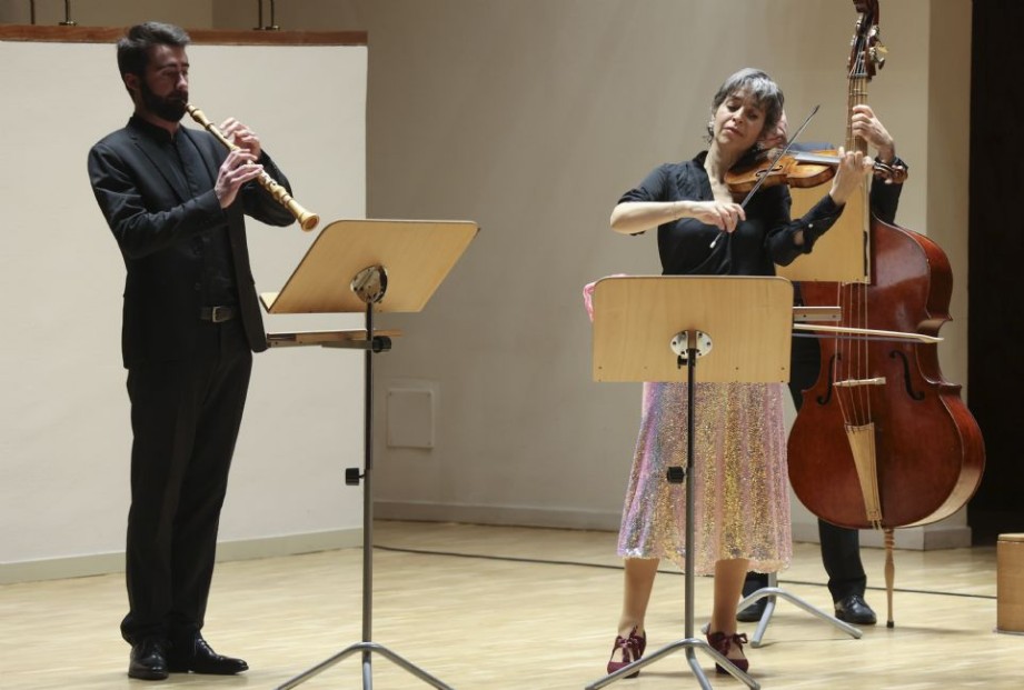 Pero vayamos al inicio del programa, para encontrar la obra que inauguró esta velada, el Concierto para cuerdas en do mayor, RV 114 [1717], excelso ejemplo dentro del género del Concerto/Sinfonia per archi [Concierto/Sinfonía para cuerdas] o Concerto ripieni –como lo denominaba el propio Vivaldi–, en el que no existen solistas, sino que la cuerda –en escritura a cuatro partes– obtiene un tratamiento orquestal de igual a igual. Un inicio interesante para mostrar los mimbres orquestales con lo que contaría la agrupación a lo largo de la noche. El empaque y las hechuras del tutti se dejaron entrever desde el inicio, a pesar de acudir, como se ha comentado, en formato camerístico a uno por parte, lo que sigue sin ser, para muchos repertorios, el ideal. Sea como fuere, el contar de manera habitual con los mismos miembros hace que el sonido resulte muy compacto y bien trabajado, sean cuales sean las circunstancias. Así quedó patente desde el Allegro que abrió la velada, a pesar de que se pudieron apreciar algunos desajustes de afinación aquí, así como ciertas articulaciones que no fueron tratadas con la misma claridad en toda la cuerda. Sin embargo, el balance entre las partes resultó excelente, así como una plasmación del brillo sonoro muy ajustada, sin evocaciones desmedidas de ese furore «vivaldiano» que, como lugar común, suelen encontrarse en muchas agrupaciones cuando interpretan su música. Exquisita musicalidad mostrada en el brevísimo Adagio por Beyer, un movimiento de mera transición hacia la descomunal Ciaccona final, ofrecida aquí en un tempo notablemente ágil, con un fraseo muy clarificador de la escritura rítmica del movimiento, mostrando una afinación excelente por el tutti. Cabe destacar aquí el colorista continuo ofrecido por Anna Fontana a la tecla –desarrollándolo con brillantez aquí desde el clave–, Marco Ceccato al violonchelo, Baldomero Barciela al contrabajo y Francesco Romano a la tiorba –que estuvo poco presente de sonido aquí y en otros muchos momentos del concierto–. La parte del violín II –a pesar que Makarenko es un violinista muy dotado y capaz– se quedó algo liviana en sonido frente a la línea de los violines I interpretada por Beyer y Roca.