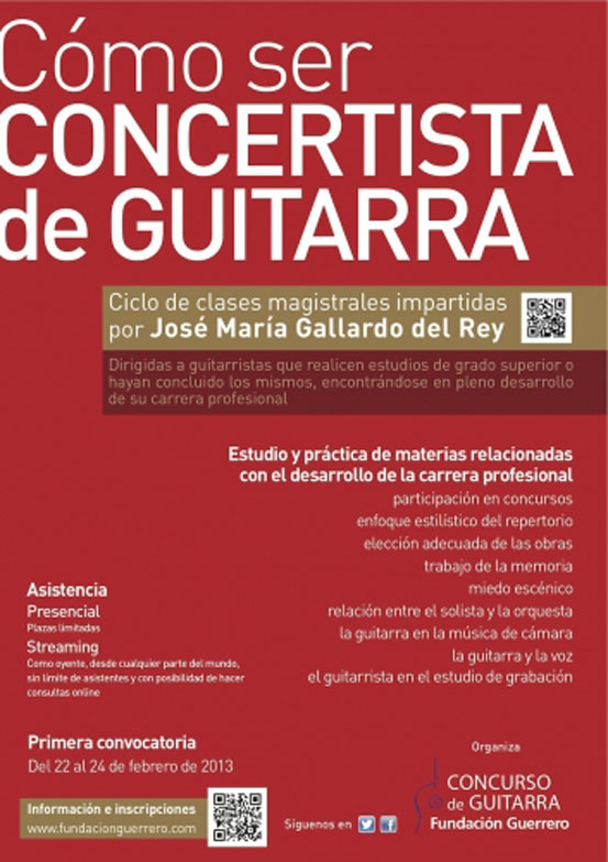 Jose María Gallardo del Rey, recogidas bajo el título "Cómo ser concertista de guitarra". Las clases poseen la particularidad de que se podrán realizar de manera
