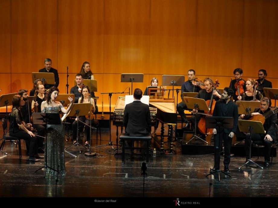 A lo ya anotado, hay que añadir algunas otras buenas razones por las que Il Pomo d’Oro y Francesco Corti volvieron a resultar –y esta ya no es noticia– los grandes triunfadores de la velada. El planteamiento de Corti –un verdadero maestro al cembalo, que se sienta y levanta de forma constante a lo largo de la velada, para dirigir con las manos las arias y los recitativos al clave, pero al que no le tiembla el pulso para salirse del rol cuando es necesario–. Tiene unas ideas musicales muy convincentes, que normalmente funcionan bien, deja trabajar a los cantantes, les da espacio para crear, pero nunca en detrimento de una unión muy orgánica con la agrupación que lidera. Es muy efectivo con el gesto, no atiende a detalles innecesarios, y lo superficial parece resultarle ajeno. Él es, en buena medida, el culpable de que IlPDO funcione como lo hace en este tipo de giras. Por lo demás, músicos notables que cumplen bien sus papeles, adaptándose a un conjunto que ya ha adquirido una más que notable personalidad. Cabe mencionar –pues no han salido a la palestra aún– los oboes –y flautas de pico, cuando son necesarias– de Tatjana Zimre y Roberto de Franceschi, además de unas trompas cumplidoras, aunque no excesivamente presentes en el tutti, a cargo de Vicent Serra y Carlos González. Especialmente impecable resultó el continuo, ya mencionado, que es, junto a la sección de cuerda, el pilar que sustenta todo lo que es Il Pomo d’Oro. Baste anotar el impecable trabajo realizado por estos en los recitativos a lo largo de la velada, en la que hubo lugar para todo tipo de recursos –algunas licencias incluidas, en aras de un dramatismo de mayo impacto–: disonancias, cromatismos, secuencias de acordes, notas tenidas, arpegiaciones…