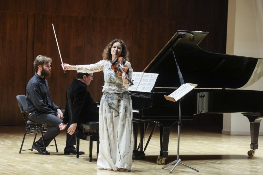 Una obra colosal ocupó la segunda parte del evento, la Sonata para violín y piano nº 1, Sz 75, de Béla Bartók. La Kopatchinskaja se dirigió al público previamente a atacar la pieza, comentando en inglés que se trata de una composición que se toca poco, dada su dificultad no sólo para los intérpretes, también para el público. Asimismo, nos puso en situación, al subrayar, que en el estreno de 1922, el propio Bartok se sentó al piano y acompañó a la gran violinista Jelly D’Aranyi, sobrina nieta del mencionado Joseph Joachim, ante un público en el que se encontraban Maurice Ravel, Igor Stravinsky, Arthur Honegger… entre otros grandes músicos de la época.