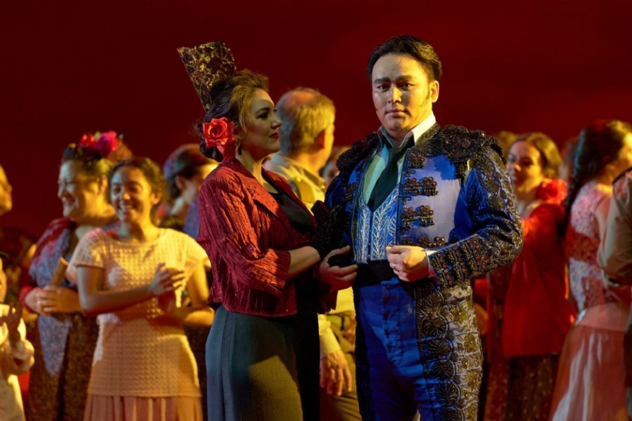 Sevilla, 18 y 21-VI-2025 Teatro de la Maestranza. Georges Bizet: Carmen, ópera dramática en cuatro actos con música de Georges Bizet y libreto en francés de Ludovic Halévy y Henri Meilhac, basado en la novela homónima de Prosper Mérimée. Maria Kataeva/Gabriela Flores (Carmen), Piero Pretti/Alejandro del Cerro (Don José), Giuliana Gianfaldoni/Maria Miró (Micaela), Dalibor Jenis/Badral Chuluunbaatar (Escamillo), Mercedes Arcuri (Frasquita), Anna Gomà (Mercedes), Javier Castañeda (Zúñiga), Alejandro Sánchez (Morales), Pablo García-López (Remendado), Pablo Gálvez (Dancaire). Escolanía de Los Palacios. Coro del Teatro de la Maestranza (Iñigo Sampil, director del coro). Real Orquesta Sinfónica de Sevilla. Jacques Lacombe/Salvador Vázquez dirección musical. Emilio Sagi, dirección escénica. Producción del Auditorio de la Diputación de Alicante, ADDA.