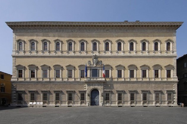 El Palazzo Farnese, actual sede de la embajada de Francia, concluido a finales del siglo XVI y que tuvo a Sangallo el joven, Miguel Ángel (responsable de la cornisa superior) y Della Porta como artífices, contiene fastuosos frescos a cargo de Volterra, Zuccari y los Carracci. Un Palacio renacentista con decoración barroca, ejemplo de esa superposición de épocas que caracteriza a Roma y que encontramos en los tres edificios aquí comentados. Cuartel general del cruel y lascivo Barón Vitellio Scarpia, jefe de la policía absolutista y personaje que mueve los hilos de la historia, símbolo de la represión política y del abuso de poder.