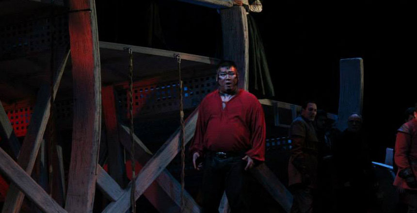 Las Palmas de Gran Canaria. 26/2/15. Amigos Canarios de la Ópera. Teatro Pérez Galdós. Otello, Verdi. Rudy Park, Yolanda Auyanet, Juan Jesús Rodríguez, Francisco Corujo, Mireia Pintó, Manuel Gómez Ruiz, Jeroboám Tejera, José Antonio García y Vicente Domínguez como el Heraldo. Orquesta Filarmónica de Gran Canaria. Direccción musical: Miquel Ortega. Dirección de escena: Alfonso Romero.