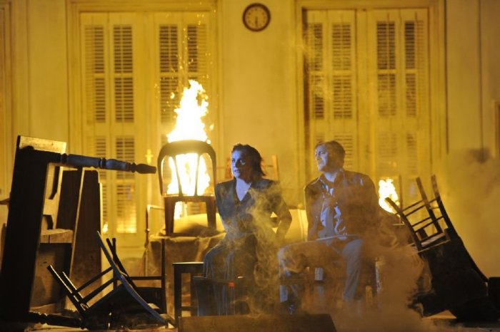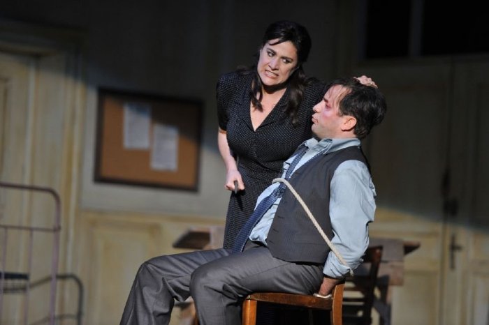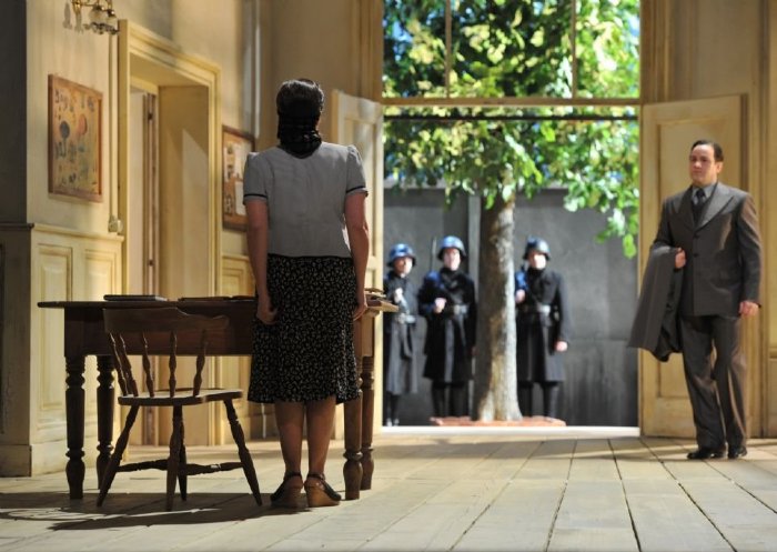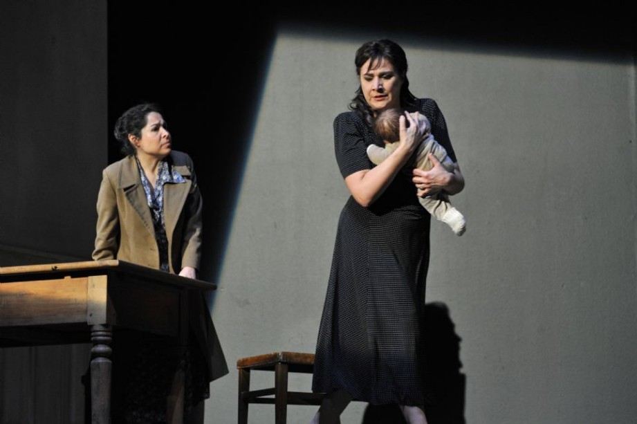 El trabajo escénico de Moshe Leiser y Patrice Caurier es quizá el más aquilatado e inteligente que les recordamos. Sin vanas ambiciones, optan por trasladar con solvencia la trama a otro marco espacio-temporal, el del asedio de Francia por el nazismo durante la Segunda Guerra Mundial, paisaje en el que Norma y los suyos son pues combatientes de la resistencia francesa. Es un trabajo severo pero funcional, que centra toda su atención en la actuación de los solistas, bien perfilados sus roles, y subrayada su acción por pequeños detalles aquí o allá, y con una protagonista que es un acertado remedo de los personajes que encarnaban Anna Magnani y compañía en los filmes del neorrealismo italiano.