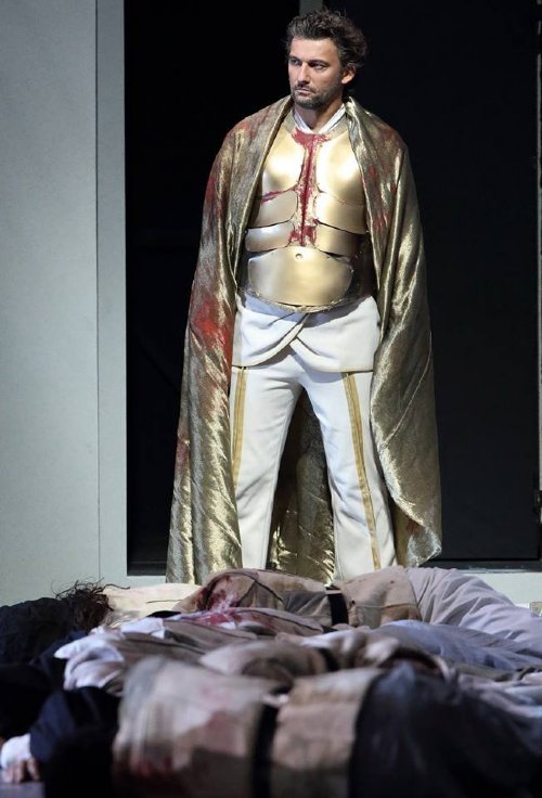 Del Radames de Jonas Kaufmann ya habíamos hablado en torno a su debut con el papel hace varios meses en Roma, en una versión en concierto con Pappano y Harteros que acaba de editarse en CD. Estas funciones en Múnich suponían pues el debut escenificado de Kaufmann con el papel. Sorprende de nuevo la inteligencia con la que el tenor alemán ha logrado adueñarse de su instrumento para afrontar hoy prácticamente cualquier papel. Mucho se ha discutido no obstante la adecuación de Kaufmann al repertorio italiano. Caliente está aún su disco sobre Puccini y precisamente la Aida grabada en Roma con Pappano que antes mencionábamos. Si bien es cierto que tiende Kaufmann a aplicar los mismos detalles y recursos a todos los papeles que incorpora a su repertorio, no es menos cierto que el manejo de los mismos es admirable (impresiona de nuevo el último “vicino al sol” atacado en un limpio y seguro pp y morendo, como Verdi prescribe). En el caso concreto de Radames, amalgama un retrato entre lírico y heroico que está exactamente en el punto justo donde la partitura lo requiere. Kaufmann se antoja pues más que preparado para su previsto debut como Otello en 2017.