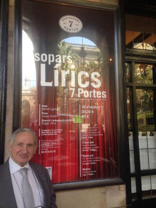 Las cenas líricas organizadas por Roger Alier y Jordi Maddaleno en el restaurante 7 Portes de Barcelona abordan esta temporada su cuarta edicion, dando oportunidad a un plantel de jóvenes solistas encabezado por el tenor Beñat Egiarte, que inaugurará la programación este viernes 16 de octubre. Le seguirán la mezzosoprano María Luisa Corbacho (13 de noviembre), el bajo Yosu Yeregui (10 de diciembre), el contratenor Víctor Jiménez (22 de enero), la soprano Irene Mas (19 de febrero), la soprano Anna Niebla (11 de marzo), el tenor Marc Sala (29 de abril) y la soprano Cristina Sánchez (20 de mayo). Las cenas, con el posterior recital lírico, tienen un coste de 45 € por persona y han gozado de una exitosa acogida por parte del público en las anteriores ediciones.