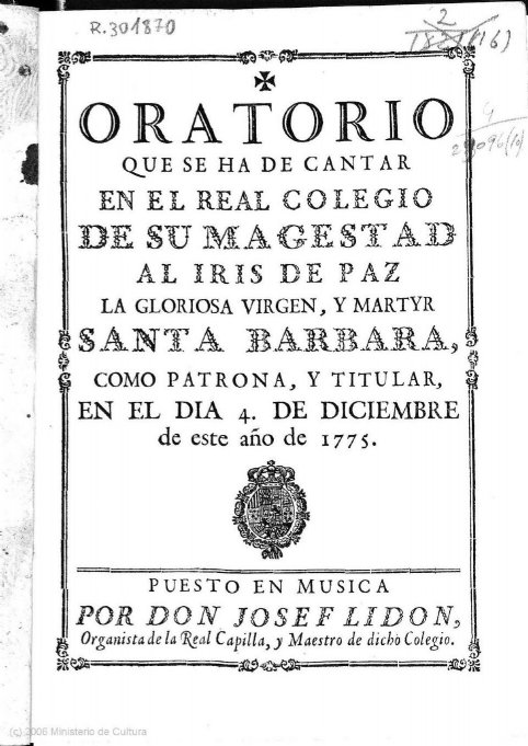 Están consiguiendo remover el actual statu quo de la musicología española. El trabajo de Raúl Angulo Díaz y Antoni Pons Seguí que están llevando a cabo en el contexto de Ars Hispana, el proyecto editorial amparado por la Fundación Gustavo Bueno, acaba de anunciar otro importante hallazgo, el segundo en menos de un mes. Se trata de un oratorio de José Lidón Blázquez, uno de los compositores españoles de mayor talento de finales del siglo XVIII y principios del XIX. La partitura procede de los fondos musicales de la corte española y ha sido encontrada en la Biblioteca Real de Madrid, lugar donde los musicólogos han localizado el libreto, donde se dice que el oratorio se interpretó el 4 de diciembre de 1775 y que fue compuesto por José Lidón. Los investigadores han demostrado, además, que la partitura es un autógrafo del propio José Lidón. Por otra parte, se han conservado dos particellas de la obra, la de trompa 2ª y la de viola, en la Biblioteca del Real Conservatorio Superior de Música de Madrid "que no dejan lugar a dudas sobre la autoría y fecha de la obra", explica Raúl Angulo Díaz.