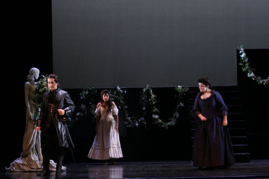 Por eso, con 200.000 euros menos de presupuesto esta temporada se prevé que las escenografías mantendrán el esquematismo, la funcionalidad y la escasa variedad de esta producción donde domina un espacio negro símbolo de la muerte, la nocturnidad y la amoralidad del personaje. El atrezzo complementario solo peca por la excesiva recurrencia a estatuas como elemento ambiental mayormente sufragado por la dirección de cantantes y la buena iluminación de Nani Valls.