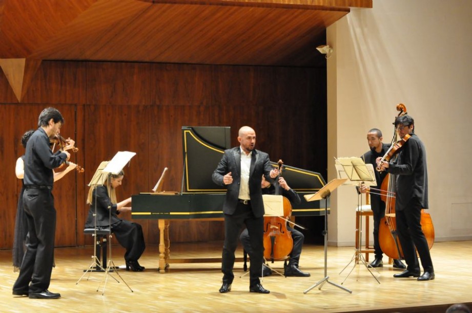 Por su parte, Il Pomo d’Oro, en una versión por la mínima, volvió a demostrar –y van…– que es probablemente el conjunto historicista en mejor forma de la actualidad. Acometer una selección operística como esta y defenderla a ese nivel con solo un instrumentista por parte está solo al alcance de unos pocos. No pueden ponerse peros en lo técnico, especialmente en el impresionante dominio de los violinistas barrocos Stefano Rossi –que comandó al conjunto con mano sutil– y Alfia Bakieva, cuyo trabajo tanto en los pasajes a unísono como en los diálogos entre las dos líneas de violín resultaron de una apabullante calidad. Pocos violistas barrocos conozco actualmente capaces de defender su parte a solo con suficiencia tal como Giulio D’Alessio, que es capaz no solo de mantener su línea firme, sino de dar una sonoridad a la viola que no es tan habitual como sería deseable. El continuo brilló de forma impecable merced a la solidez de Ludovico Minasi [violonchelo barroco] y Jonathan Álvarez [contrabajo barroco], que lograron un sonido conjunto muy logrado, con una afinación en las octavas realmente impresionante. Mención aparte merece Federica Bianchi, que desarrolla un continuo riquísimo, repleto de imaginación y sutilezas que adornan de forma impactante el continuo permanentemente. Especialmente destacable la labor del conjunto en las piezas puramente instrumentales interpretadas, como fueron las bellísimas Sonata a cuatro en Sol mayor, Op. V, n.º 4 –¡esa Passacaglia!–, y la Sonata en trío en Sol menor, Op. II, n.º 5. Fantásticamente adheridos a una misma concepción de la música, los seis instrumentistas dieron una lección magistral de refinamiento händeliano, deleitándose de manera muy especial en las sutiles disonancias cadenciales de muchos de los movimientos.