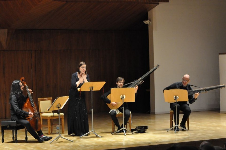 El resto del programa se conformó con otras obras vocales de grandes exponentes compositivos del momento, como Tarquinio Merula (1594/95-1665), por medio de su maravillosa y afamada Folle è ben che si crede; Luigi Rossi (1597/98-1653), excepcional ejemplo del trasvase de estas teorías florentinas –que con Monteverdi se trasladan a Venezia– a la ciudad de Roma, interpretando La bella più bella y A quel dardo, dos brillantes y deleitosos ejemplos de canzonette para voz sola y continuo del autor de Torremaggiore. Por último –entre los autores de piezas para voz y acompañamiento–, Sigismondo d’India (c. 1582-1629), con dos ejemplos de su refinado tratamiento vocal –como buen cantante que era–: Intenerite voi, lagrime mie y Crud’Amarilli [Le musiche, Milano, 1609]. Por su parte, los tres instrumentistas tuvieron momentos para su lucimiento solista de la mano de algunos de los máximos representantes de la música instrumental del Seicento italiano, especialmente Johannes Hieronymus Kapsperger (c. 1580-1651), con tres ejemplos de su Libro IV d'intavolatura di chitarrone [Roma, 1640], dos de ellos sobre los numerosos bassi ostinati que aparecen en la colección –passacaglia y bergamasca–, para concluir con la célebre y maravillosa Toccata arpeggiata.