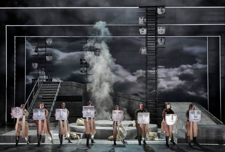 Francesca Zambello nos presenta ahora un mundo en decadencia, devastado, oscuro. Los secuaces de Hunding parecen guerrilleros (o terroristas) de algún conflicto contemporáneo, Siegmund muere debajo del paso elevado de una autopista de aspecto destartalado y la peña en la que Brünnhilde se duerme evoca un escenario devastado por la guerra. En contraste, Wotan aparece en el segundo acto en la cima de su poder, en una majestuoso edificio art decó y con aspecto y maneras de un industrialista sin escrúpulos, un robber baron. Su lanza, más tosca en Rheingold, ha evolucionado y ahora tiene incluso un asta plateada. Si en el prólogo tuve algún reparo con la propuesta de Zambello, en esta primera jornada todo ha funcionado mucho mejor. Una proyección desde el punto de vista de Siegmund nos pone rápidamente en situación durante la tormenta inicial, las caracterizaciones de los personajes están bien delineadas –aunque todavía con poca dirección actoral en ocasiones– y hay lugar para momentos efectistas. Entre estos destaca la llegada de las valquirias, que descienden en paracaídas diagonalmente sobre el escenario. El uso de especialistas y un buen control de la coreografía y los tiempos hacen que esta escena resulte vistosa sin distraer o interferir con la música. Todas las guerreras –aquí ataviadas de aviadoras de la Segunda Guerra Mundial– entran cuando deben y pueden cantar sus líneas claramente. También impactó la cortina de fuego real al final de la ópera.