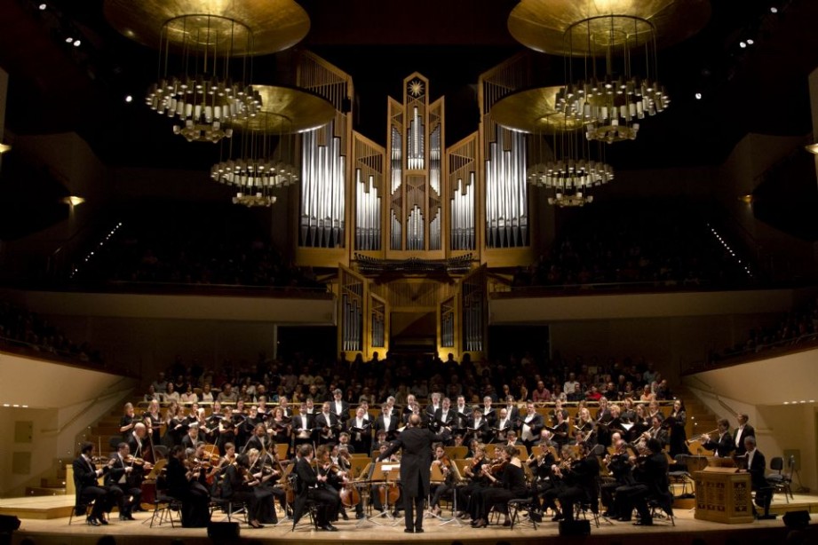 La obra es bien conocida –Hengelbrock y los suyos ya la grabaron dentro de una serie de dos discos titulados From the Music Library of Johann Sebastian Bach–, dado que el Kantor de Leipzig poseía una copia de la misma en su biblioteca musical, e incluso llegó a utilizar un pasaje en su Sanctus, BWV 241, compuesto entre julio de 1747 y agosto de 1748. Bach intercambió los instrumentos colla parte [4 trombones] por 3 violas y fagot, añadiendo a su vez algunos instrumentos más –como un oboe d’amore– y reescribiendo y añadiendo algunos pasajes del movimiento. La visión de Hengelbrock y los suyos aquí fue la de vincular a nivel sonoro ambos autores, lo cual, teniendo en cuenta que entre ambas obras transcurren nada menos que 117 años, es poco menos que una utopía. Es prácticamente imposible que Kerll conociera en su tiempo un conjunto de tal calibre –¡con una sección de cuerdas 10/9/6/5/3!– [ni tan siquiera Mozart, salvo en contadas ocasiones]. La visión, en la que se alternaron pasajes del tutti en la cuerda con otros concebidos de forma más íntima –únicamente dos violines y el continuo–, incluyó un inmenso coro de más de 40 efectivos [12/11/9/10], con el que de nuevo se jugó en un efectivo contraste entre los soli y las partes generales. Pocas veces un estilo concertato se ha visto tan abruptamente contrastado a nivel sonoro. Como siempre me sucede con este conjunto –en las diversas ocasiones previas en las que le he escuchado en directo, con Hengelbrock y otros directores al frente–, me quedo de nuevo con la sensación de estar ante un excepcional conjunto cuando se aúnan todas las fuerzas, pero cuyos enteros disminuyen a medida que las partes solistas van apareciendo. La vocalidad resulta extremadamente poco delicada para este repertorio, inestable, así como tremendamente desigual en la calidad de unos y otros cantores. Son muy pocas las excepciones en que algunos de los intervinientes a solo consigue convencerme en calidez, brillantez, solvencia técnica y adecuación estilística. Por cierto, un aspecto que no es baladí –y que no es solo habitual en este conjunto, sino en la mayoría de los conjuntos que interpretan este repertorio–: ¿por qué razón cuando un solista acomete la interpretación del incipit en canto llano del Gloria y Credo de una misa lo hace como si estuviera cantando un aria operística? ¿No tendría más sentido interpretarlo precisamente como lo que es, un pasaje introductorio en canto llano, esto es, de forma más neutra, sin ningún tipo de vibrato y con una diafanidad melódica más marcada? Aun con todo, y gracias en buena medida a que pasajes como el Sanctus y Agnus Dei poseen una música de una calidad superlativa, hubo momentos de disfrute, a pesar de que parecía estar escuchándose a un Kerll pasado por un tamiz muy posterior.