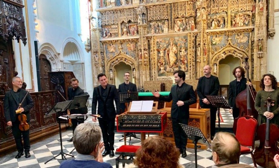 Steger estuvo fantásticamente arropado por los miembros de Tiento Nuovo, en plantilla de uno por parte. Como siempre, magnífica la labor en los violines de Hiro Kurosaki –que ofreció una notable versión de la excepcionalmente hermosa Sonata para violín y continuo en La mayor, Op. I, n.º 10, de Georg Friedrich Händel (1685-1759)– y Daniel Pinteño. Ambos violinistas de enorme talento, tienen algo realmente más bueno si cabe que su calidad interpretativa y técnica, su enorme capacidad para entenderse y una manera de disfrutar cada pasaje que resulta admirable y envidiable. Todo ello tuvo su correspondiente traslación en las dos obras de Antonio Caldara (1670-1736) para dos violines y continuo, las sonatas n.os 4 y 12 del Op. II del autor italiano, entre las que destacó esa Ciaccona en Si bemol mayor de epatante belleza y de particular escritura –con magníficas modulaciones, pasajes cromáticos y un desarrollo del basso ostinato en el que las notas de paso ornamentan rítmicamente el habitual descenso en compás ternario–. Más discreta, aunque no por ello menos relevante, resultó la aportación de Alfonso Leal del Ojo a la viola, que cumplió con garantías la siempre complicada y a veces tan poco agradecida línea del alto, con un cuidado sonido, notable balance en el todo del conjunto y una magnífica afinación.