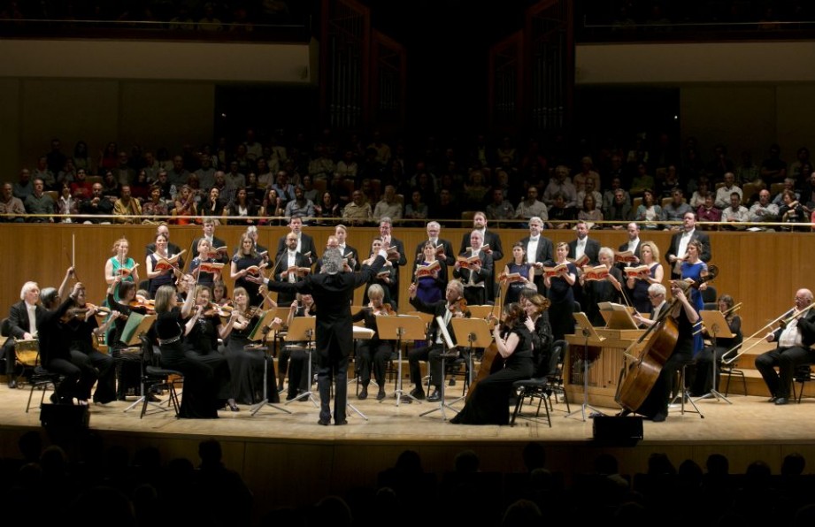 Es, pues, de un maravilloso oratorio coral. Y en ello radicó gran parte del éxito de esta velada, dado que el coro de The Sixteen rindió a un nivel absolutamnte estratosférico. Sonido absolutamente pulido, con un empaste entre cada cuerda y a nivel global realmente impresionante, un afinación milimétrica, podrío sonoro, gran presencia escénica, una dicción tan bien trabajada como fluida, una sincronía impresionante en entradas y finales de frase, articulaciones trabajadas al detalle y una elegancia superlativa en cada una de las líneas. Diría que es prácticamente imposible presenter una version major que esta desde el punto de vista coral. Colocados en formación de doble coro y conformado por un total de 26 cantores [8/6/6/6], el balance entre las cuerdas y el trabajo policoral resultó absolutamente apabullante, digno de un maestro de la filigrana coral en este tipo de repertorios como es Harry Christophers, que dirigió con soltura, naturalidad, un gesto muy académico, atento a cada mínimo detalle y con ese vigor que le caracteriza. Cuando un director proviene del mundo coral y es un profundo conocedor del mismo, el resultado es absolutamente inmejorable en comparación con los directores de orquesta que tienen que dirigir coros en ocasiones concretas. Christophers, que surge de ese mundo, ha sabido hacer extensivo ese tipo de trabajo a su orquesta, por eso la imbricación entre ambas agrupaciones resulta tan lograda.