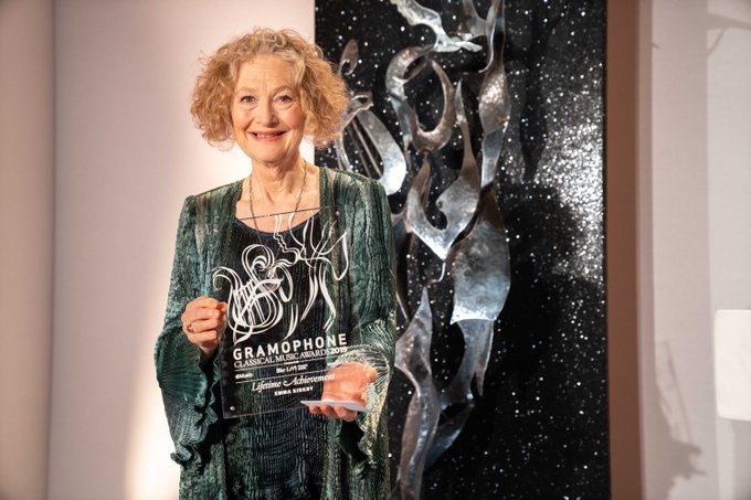 La soprano británica Dame Carolyn Emma Kirkby [Camberley, 1949] recibió ayer uno de los más prestigiosos galardones que otorga una revista especializada a nivel mundial: el Gramophone Classical Music Award, que en esta edición 2019 recayó en esta cantante inglesa en la cateogría Lifetime Achievement, algo así como el «logro de una vida». Una emocionada Kirkby recogió el galardón ante un público totalmente entregado y puesto en pié, que la ovacionó calurosamente. La gala tuvo lugar el 16 de octubre en la capital londinense, aglutinando en los salones de De Vere Grand Connaught Rooms a buena parte de la «élite» de la música «clásica». En palabras de Nicholas Kenyon, para Gramphone: «No muchos cantantes son revolucionarios; no se puede decir que muchos hayan cambiado radicalmente el sonido de la música en nuestro tiempo. Pero ese es el logro de toda la vida de Emma Kirkby: a través de su voz totalmente distintiva, su enfoque artístico y su creación musical sumamente inteligente, ha transformado nuestra experiencia de un repertorio de buena música. Ella ha sido una de las fuerzas más poderosas en el renacimiento de la música antigua los últimos casi 50 años y, por lo tanto, una parte clave de uno de los movimientos más importantes e influyentes en el mundo musical de hoy» [el texto completo puede leerse aquí].