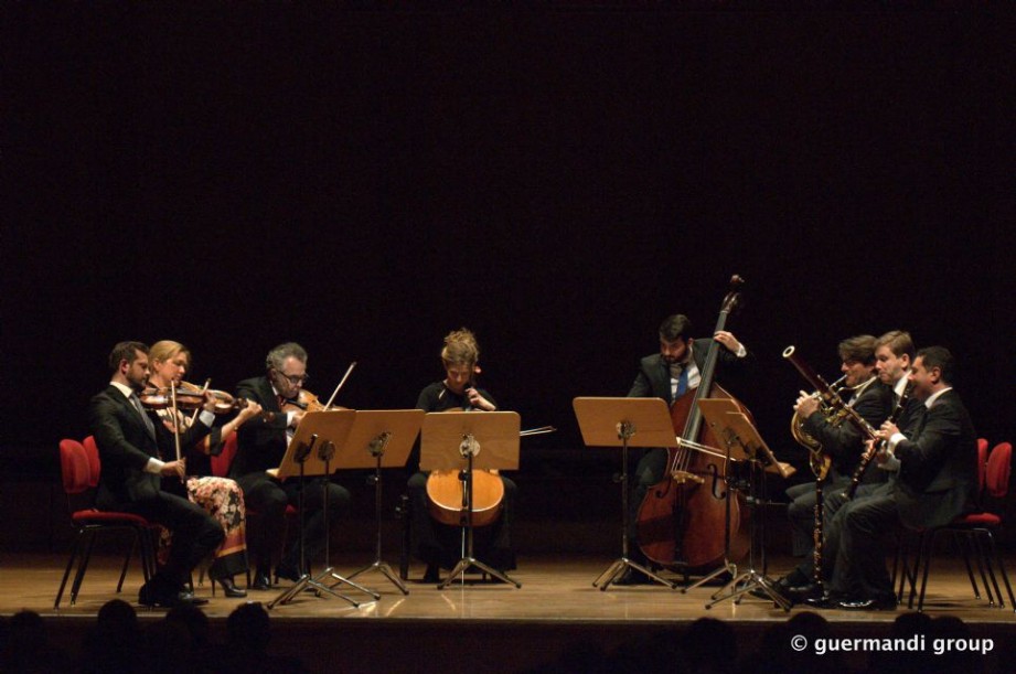 Bologna. Auditorium Manzoni 13-I-2020. Musica Insieme XXXIII edición. Suite ceca in re maggiore op. 39 versione per ottetto di archi e fiati de Antonín Dvořák. Ottetto in fa maggiore D 803 per archi e fiati de Franz Schubert. Benjamin Peled [violín], Annebeth Webb [violín], Jeroen Woudstra [viola], Maartje-Maria den Herder [violoncelo], Ricardo Xambre [contrabajo], Calogero Palermo [clarinete], Hervé Joulain [trompa], Marceau Lefèvre [fagot].