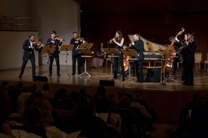 Músicas nocturnas, un título tan extensivo como ramplón para un programa que podría haber imbricado de manera mucho más refinada a autores tan distantes como los que lo protagonizaron. Se inició la velada con Henry Purcell (1659-1695), el compositor británico más importante de todo el Barroco –obviando a Handel como naturalizado–, interpretando algunos fragmentos de su magnífica semiópera The Fairy Queen, Z 629, de 1692, comenzando con dos fragmentos instrumentales: Prelude y Hornpipe [acto IV], en los que los miembros del Ensemble 1700 demostraron una buena adaptación al estilo siempre tan particular de Purcell, en el que la influencia de lo francés es siempre evidente pero sutil. Gran balance entre los violines, con una afinación y empaste muy logrados, ofreciendo además una Hornpipe de enorme vigor y rítmicamente muy ajustada. Para el aria «See, even night herself is here» [acto II] hizo su aparición Marie Lys, que acudía aquí en sustitución de la anunciada Anna Prohaska. A la delicadísima introducción de los violines y viola sin continuo, precedida por un breve solo de archilaúd, le siguió una línea vocal brillante en el agudo, con una dicción notablemente efectiva, de carácter muy ajustado a las exigencias vocales y un uso del vibrato un poco desmedido, especialmente en los finales de frase. El Prelude del acto II sirvió para que las flautas de pico demostraran un interesante balance con la cuerda. De nuevo Lys en escena para interpretar «One charming night» [acto II], con un registro agudo un poco tenso y haciendo gala de unas cuidadas ornamentaciones. La Chaconne: Dance for Chinese Men and Women [acto V] cerró esta selección, en una lectura con delicados unísonos en las flautas y un refinado trabajo entre violines y flautas doblados, ofreciendo en los pasajes a solo momentos de gran delicadeza, como los ofrecidos por viola y flautas, culminando con un tutti de cuidada sonoridad.