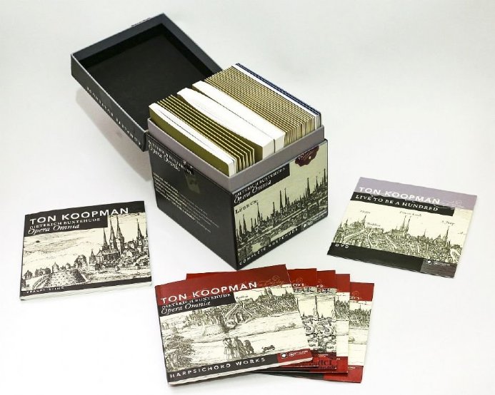 Por último, es necesario detenerse brevemente en el proyecto de grabación que por fin ha puesto a Buxtehude en el lugar que justamente merecía. Tras concluir su ingente integral de las cantatas «bachianas», y habiendo grabado ya la mayor parte de la música orquestal, vocal sacra y organística del genial compositor de Eisenach, en 2005 el intérprete, director y musicólogo holandés Ton Koopman inició, junto a su conjunto The Amsterdam Baroque Orchestra & Choir la integral de su música bajo el título Dieterich Buxtehude - Opera Omnia. Un proyecto ingente, qué duda cabe, que requirió de un total de treinta CD grabados a lo largo de diez años y editados primeramente en veinte volúmenes, divididos en los cuatro ámbitos de su producción musical: música para clave [4 CD, vols. I & VI], música para órgano [6 CD, vols. III, IV, VIII, IX & X, incluyendo la obra para el instrumento conservada de Nicolaus Bruhns], música de cámara [3 CD, vols. XII, XIII & XV] y música vocal [17 CD, vols. II, V, VII, XI, XIV, XVI, XVII, XVIII, XIX & XX]. Finalmente, el año 2014, con todos los volúmenes editados por separado, se lanzó al mercado un cofre con el total de treinta CD, a los que se añadió un DVD con un documental sobre el proyecto. Entre los solistas vocales escogidos para llevar a cabo estar histórica labor, algunos de los habituales en las grabaciones previas de Koopman, especialmente en la integral de cantatas «bachianas»: Caroline Stam, Johannette Zomer, Bogna Bartosz, Jörg Dürmüller y Klaus Mertens, a los que añadió otros cantantes de probado nivel como Orlanda Vélez Isidro, Robin Blaze, Daniel Taylor, Patrick van Goethem, Andreas Karasiak o Donald Bentvelsen, por citar algunos. Koopman llega aquí como uno de los grandes conocedores de la obra de Bach, por lo que se antoja un magnífico exponente para llevar a cabo un proyecto de este calibre. Sus versiones, sin entrar a analizar las posibles deficiencias y bondades, logran poner en la palestra a un compositor genial, de enorme brillantez, mucha inteligencia, un gran oficio y enorme refinamiento. Una presentación muy cuidada, información muy completa y detallada, con extensas notas críticas sobre las obras interpretadas. En definitiva, un proyecto y un cofre –reeditado en 2019 por el propio Challenge Records, con una nueva imagen– que son imprescindibles para todo aquel apasionado de este autor, pero también del Barroco alemán y del europeo. Para el que aún no lo sea, sin duda una oportunidad magnífica de conocer a quien fue uno de los grandes compositores de la Historia de la música occidental, alguien al que Bach admiró no sin razón y que merece un puesto en la historiografía y discografía por sí mismo, si necesidad de compararse con nadie. Buxtehude fue un grande antes de Bach, no hay duda, pues su nombre tiene la capacidad de sonar per se, como así se está comprobando. No se pierdan su música, pero piérdanse en ella; merece inmensamente la pena hacerlo...