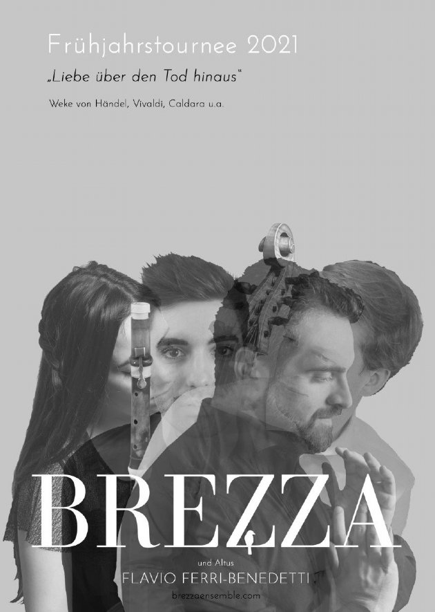 El ensemble hispano-holandés BREZZA, especializado en la interpretación historicista de la música de los siglos XVII y XVIII, acaba de iniciar una importante gira de conciertos en Suiza, país de residencia de sus intérpretes. Este tour, que se conforma de hasta un total de nueve actuaciones, se inició el pasado fin de semana con dos conciertos, en Zurich y Muri bei Bern, y les llevará a recorrer otras siete ciudades del país entre los meses de abril y junio: Lucerna, Basilea, Winterhur, Frauenfeld, Langenthal y Steckborn. La agrupación, cuyo interés musical se centra en la combinación instrumental barroca del traverso, la viola da gamba y el clave, está integrada por los miembros fundadores y estables del conjunto: Pablo Gigosos [traverso], Marina Cabello del Castillo [viola da gamba], y Teun Braken [clave], a quienes se unirá para esta gira el contratenor hispano-italiano Flavio Ferri-Benedetti. Bajo el títutlo El amor más allá de la muerte, contiene en esencia un recorrido por el amor trascendente y metafísico del Barroco, de tal forma que BREZZA y Ferri-Benedetti proponen a los espectadores un viaje por las colecciones de piezas instrumentales que, en combinación con las partes cantadas, invitan al oyente a un paseo por un paisaje sonoro que transita por la música de los autores italianos Antonio Vivaldi y Antonio Caldara, centrándose después en el universo de la cantata da camera del germano-británico George Frideric Handel. Este espectáculo de BREZZA y Flavio Ferri‐Benedetti pretende explorar el mundo intelectual del amor, la lujuria y el sufrimiento en el ámbito de la música instrumental del siglo XVIII. El programa persigue transmitir el concepto del amor de la época, situado a menudo en el campo dramático entre esta vida y la del más allá.