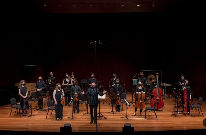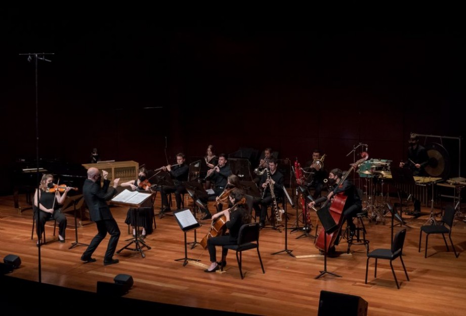 Madrid. 26-IV-2021. Auditorio 400 del Museo Nacional Centro de Arte Reina Sofía. Centro Nacional de Difusión Musical [Series 20/21]. Quatre pantomimes pour six, de Luis Fernando Rizo Salom; At First Light, de George Benjamin; Libres en el sonido, presos en el sonido, de Graciela Paraskevaídis; Sinfonía de cámara nº 1, Op. 9, de Arnold Schönberg.