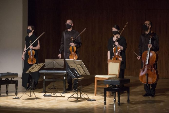 Con una trayectoria en ascenso vertical desde que fuesen galardonados con el primer premio en el Concurso para cuartetos de cuerda de Heidelberg en 2018, el Cuarteto Cosmos, nacido en 2014, ya ha sido puesto en el punto de mira por varios compañeros de profesión por su calidad sonora. Una calidad que quisieron demostrar en su estreno en esta gran casa de la música española que es el Auditorio Nacional de Música de Madrid.